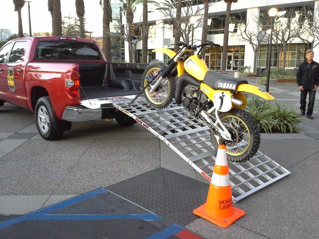 ロードレースやモトクロスを楽しんでいる方には、バイクを運ぶトランスポーターは必需品ですが、そのトランポにバイクを積むためのラダーレールも欠かすことができないツールです。様々なタイプがありますが、この「SHARK KAGE」のラダーレールは世界最強かもしれません。アメリカンサイズのピックアップトラックと較べてもこの大きさ。一般的なラダーレールの3倍ほどの横幅がありますね。トラックのあおりに固定すると豪快なベッド・エキスパンダーになります。こちらはトラックのベッドに置いてカーゴスペースとして利用する例です。トラックのベッドを覆う強靭なトノカバーとしても便利です。サーキットやモトクロス場に着いたら便利なテーブルとしても使えます。専用のテントを張れば日差しや雨をさえぎるタープに早変わり。https://www.youtube.com/embed/f7rqoBrUSM8?rel=0● Shark KageTM 1200 Aluminum Truck Ramps - #1 in Safety and Functionこれは豪快なアメリカン的発想ですね。ただ日本でトランポの主流となっているワンボックスカーではこのラダーレールを積んだら肝心のバイクを積むスペースがなくなってしまうかも。Shark Kage Truck Ramp - Your Ultimate Pickup Truck AccessoryThe first 6 in 1 MULTI-USE RAMP for your pickup truck, Shark Kage attaches securely to your tailgate and is the better choice for loading motorcycles, ATV窶冱, and more.www.sharkkage.com
