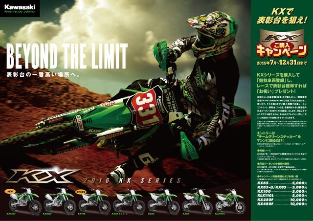 カワサキは、2015年7月15日から発売されるKXシリーズの購入者を対象としたキャンペーンを実施する