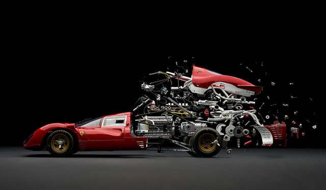 バラバラに爆発した高級車のアートフェラーリが、ジャガーが、ベンツが、崩壊?爆発?しちゃってます。こちらは、スイスのファビアン・オフナー氏のアート作品です。オフナー氏の作品は、以前ロレンスでも蛍光塗料を吹きかけられたフェラーリのアートをご紹介しました。今回は本物の車輌ではなく、模型です。完全に分解してからパーツを一つ一つ置きながら撮影して、合成したものだそうです。Ferrari 330 P4 (1967)fabianoefner.comJaguar E-Type (1961)fabianoefner.comMercedes-Benz 300 SLR Uhlenhaut Coupéfabianoefner.comバラバラになっているはずなのに、なぜか秩序立っているというか、調和がとれているというか、そんな風にも見える美しいアートですね。殻を破って生まれてきたフェラーリこちらの作品は、割れた石膏から出てきたフェラーリです。車が作られるのではなく「生まれる」という解釈から、殻を破って孵化するイメージを表現しているそうです。Ferrari 250 GTO (1962)fabianoefner.comどれもアイディアが斬新ですよね。それにも関わらず、破壊的というよりはむしろ統一感のある印象を感じるのは、細部まで計算された作品だからでしょうか。制作過程も気になるという方は、動画もどうぞ!//www.youtube.com/embed/XrUWB6h9pZw?rel=0Fabian oefner hatch and disintegratingyoutu.be以前ご紹介した記事はこちらです。超高級車フェラーリに蛍光塗料を吹きかける贅沢で大胆な美しいアート! - LAWRENCE(ロレンス) - Motorcycle x Cars + α = Your Life.フェラーリに蛍光塗料を吹きかける斬新アート蛍光塗料を高級車フェラーリの「カリフォルニアT」に吹きかけるという贅沢で大胆なアート作品です。ブラックのフェラーリにカラフルな蛍光塗料が容赦なく吹きかけられる様子は、幻想的でどの角度から見ても美しいです!!!この作品を制作したのは、スイスの芸術家ファビアン・オフナーさん。fabianoefner.comカラフルな色彩に躍動感を作り出す作品が特徴の世界的なアーティストです。カリフォルニア Tauto.ferrari.com動画はこちらA Unique Stage for a Unique Performancevimeo.comファビアン・オフナーさんの作品が気になるという方はこちらもぜひご覧ください。ファビアン・オフナーさんの作品Guster Evermotion Album Art Revealyoutu.beFerrari California Tのオフィシャルサイトのオフィシャルサイト新型Ferrari California Tのオフィシャルサイト:最新V8エンジン・フェラーリモデルの動画、画像および技術諸元などの詳細。auto.ferrari.comlrnc.cc