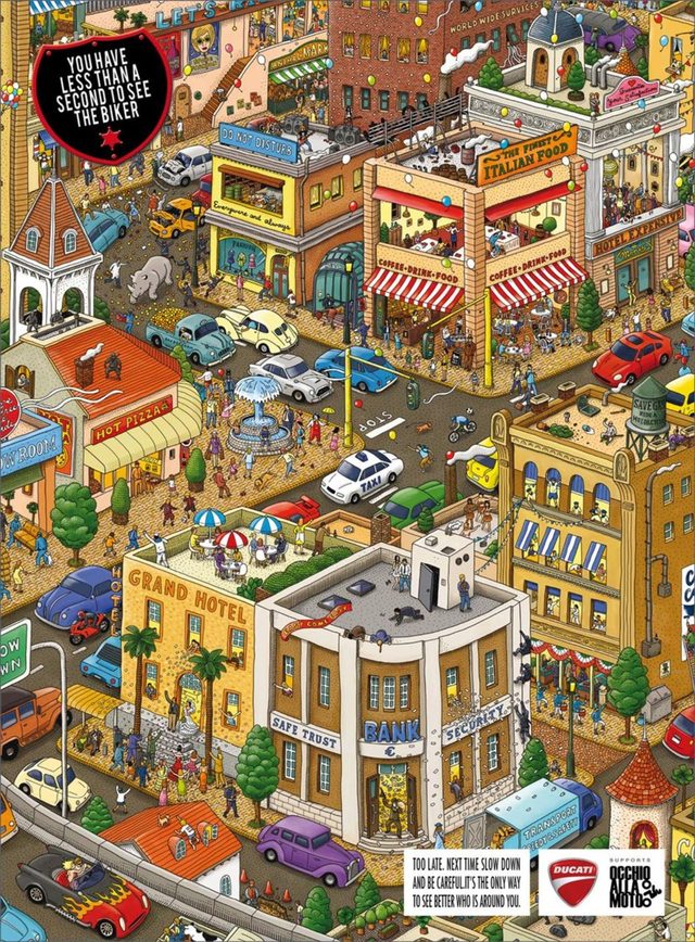 この中に赤いDUCATIがいます。皆さんどこだかわかりますか??Ducati for ANCMA (イタリアバイク協会)www.behance.netこのイラストすごくかわいいですよね!こちらはドゥカティのスポンサーがついたイタリアのバイク協会から2010年に公開されたDUCATIの広告です!よくみると一つのイラストの中で様々なドラマが繰り広げられているのでじっくりみてみると面白いですよ♩ちなみに正解を言ってしまうと...blog.gaborit-d.comHOTELの横のここでした♩このイラストが完成するまでのメイキング動画も素晴らしいのでぜひご覧ください♩//www.youtube.com/embed/pA-I-HYv1ik?rel=0Ducati for ANCMA highyoutu.be