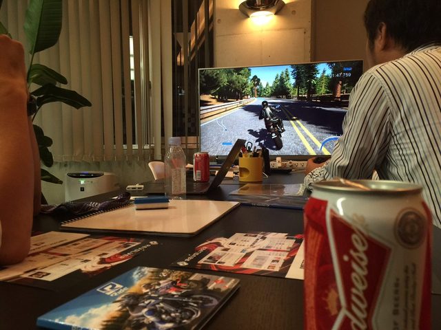 以前に紹介いたしましたリアルライディングシミュレーターゲーム『RIDE』。ついにロレンス編集部に届きました!予定通り6月25日に届いたんです。とはいえ、結構忙しい編集部。なかなか試せなかったんですが、昨夜ようやくパッケージを開け、トライしてみました。これがCG?? 激走するバイクレースを精密に再現したゲーム「RIDE」がすごすぎる! - LAWRENCE(ロレンス) - Motorcycle x Cars + α = Your Life.イタリアのMilestone社のリアルライディングシミュレーターこのゲーム「RIDE」は、イタリアのゲーム開発会社Milestoneが満を持して発表した凄・ゲーム(ローカライゼーションを行っているのはインターグロー社。)。『リアルライディングシミュレーター』というカテゴリーだそうです。ぼくはゲームをほとんどやらないのですが、動画を見ただけで、その精密さに度肝を抜かれてしまいました。コーナリング中に縁石に乗り上げた瞬間の挙動をみても、まさしく本物。100種類以上(全135車種)の実車のデザインはもちろん、エンジン音までを完璧に再現しているとのことです。前ブレーキを掛けたときのサスペンションの沈みや,加速時の後輪のグリップ感は「どうやって再現したのだろう」と思うくらいリアルだという。さらに中野さんは「普段バイクに乗っている人はすごいと思うでしょうし,そうでない人もプレイして『バイクに乗ってみたい』と思ってくれたら最高です」「2気筒と4気筒の違いまで表現している」(元MotoGPライダー 中野真矢さん)www.4gamer.net■ 実在のパーツメーカーの無数のパーツで改造可能。オリジナルバイクでのコンペが可能!■ 実在のメーカーのライダーウェアでライダーをカスタマイズ!■ 実在のグランプリコースでのレース。プロのレーサーもシミュレーションに使うほどの正確・精細なコース再現!■ 実在の都市や観光地をコース化!■ 物理演算をバイクの挙動と映像に適用したリアルなゲーム体験!game.intergrow.jpバイクシミュレーションゲーム「Ride」の一シーン。とてもCGとは思えない精密さgame.intergrow.jpまずは動画でその凄さを体験動画を見る限り、さすがに実写によるムービーとは区別はつくものの、とにかくその動きは完璧です。このゲームで練習したら、相当にオートバイの乗り方、上達しそうです。(公道で試せるかどうかはわかりませんがw)RIDE PV(HD)youtu.beRIDE GAMEPLAY Sierra Nevadayoutu.be//www.youtube.com/embed/7YgUML1s_IE?rel=0RIDE GAMEPLAY SUGOyoutu.be発売は、2015年6月25日ころとのこと。対応機種は、PS3/PS4/Xbox360/XboxOneの4つ。ロレンス編集部内でもこれ、必須じゃないかな。買ってもらうように頼んでみよっと〜!RIDE[ライド] バイクライディングシミュレーター - インターグローバイクライディングシミュレーターゲーム「RIDE ライド」の公式サイトです。PS4、PS3、Xbox One、Xbox360対応game.intergrow.jplrnc.cc編集長、トーマスが見守る前でタイムアタックにトライする宮崎記者ものすごく真剣です。ちなみに最初は3種類のバイクしか選べません。きっちり遊んで腕をあげると、よりいいマシンを選べるようになります。画面のバイクはYAMAHA MT-07。コーナーに進入する寸前。体を起こします。荷重開始!ハングオフ!タイヤが鳴ります。ミーティング後の1時間ほど、ビールを片手に遊んだんですが、実に難しい。シフトチェンジやアクセル操作はもちろんですが、直線で速度を稼ぐために体を伏せるなど、動作が細かいんです。もちろん、ある程度自動モードにはできるんですが、バイク乗りとして、それはねw。クラッシュした時の痛そうな転け方とか、スリップしたり接触してバランスを崩した時のライダーの所作とか、ほんとリアルです。これから徐々に使い込んで、7月中にロレンスGPを開いてその模様をお伝えするつもりです。「RIDE」、絶対 買い ですよ!