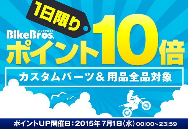 バイクブロス通販では7月1日の1日限定でポイント10倍セールを実施中