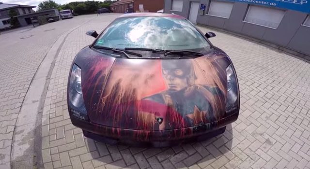 一見なんの変哲もないランボルギーニ ガヤルドお目にかかれるだけでも光栄なほどの超高級車ですが、このガヤルド。実は少し変わったトリックが隠されているんです!このように水をかけると...色が変わりました!!どうやらなにかの絵のようです。正面から水をかけてみましょう!ん!...