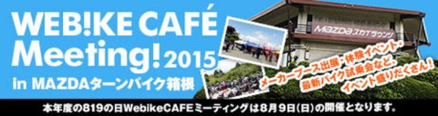 8月9日(日)にMAZDAターンパイクでWebikeCAFEミーティング開催!公道試乗会をはじめ、 「タイヤ交換チャレンジ!」「チェーン交換・カシメ体験」など 体験型イベントも豊富に用意されている 『WebikeCAFEミーティング』が今年も開催されます。 もちろんアウト...
