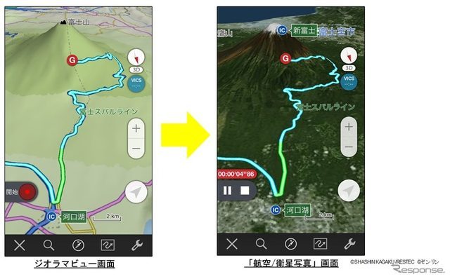 ナビタイム、iOS版ツーリングサポーターに航空/衛星写真機能を追加