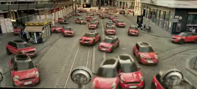 みるみるうちにMINIが増えてくる!MINIのCMがおもしろい!CMは一台のMINIが路地に入っていくところから始まります。スピードを出して、狭い道をどんどん入っていったところに...突然前から銅像を運ぶ人が!あぶない!ぶつかっちゃう!と思ったけど...このMINI、なん...