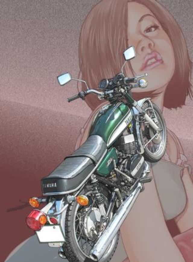 【東本昌平イラスト・美女とバイクシリーズ】色っぽいワンレングス美女 x YAMAHA RD350