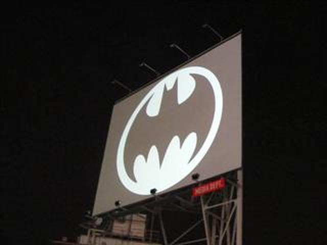 バットマン80周年を記念して、渋谷のスクランブル交差点にあるMAGNET by SHIBUYA109で行なわれたアニバーサリー・イベント。有名なDCコミックアーティストのジム・リーと共に、映画でおなじみバットシグナルが渋谷の空に浮かび上った!