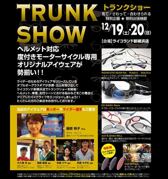 ダブルオーグラスギアが出張フィッティングをライコランド新横浜店で開催ダブルオーグラスギアが12月19・20日にライコランド新横浜店で無料出張フィッティングを開催news.bikebros.co.jp