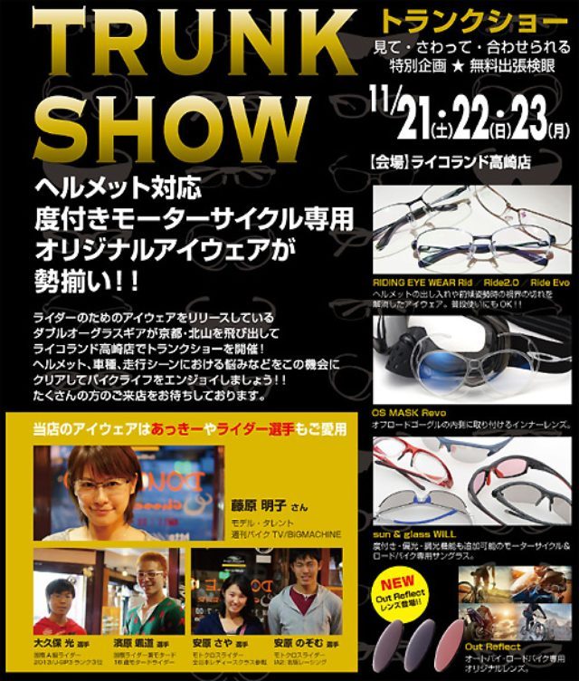 ダブルオーグラスギアが出張フィッティングをライコランド高崎で開催ダブルオーグラスギアが11月21~23日に群馬のライコランド高崎で無料出張フィッティングを開催news.bikebros.co.jp