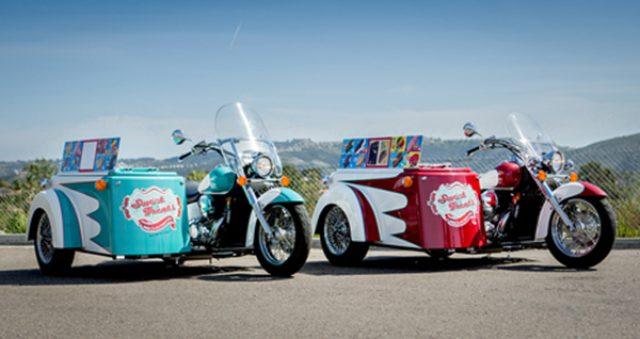 みてみてー!かわいいー!sweettreatstruck.comこちらは、サンディエゴでアイスクリームの移動販売を行っている「Sweet Treats Truck, Inc」のバイクとサイドカー。カスタムして、約500ものアイスを運搬できるようにしたんですって!!スイ...