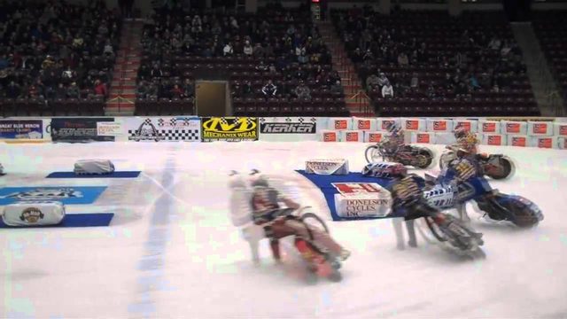 氷の上のバイクレース!!!このレースに使われているバイクは、追突防止のためブレーキが付いていないそうですよ〜!!!そのせいか、カーブではみんな足ついっちゃってますね!順位がコロコロ入れ替わって、最後まで結果がわからないので見ていて面白いですよ!!!Extreme ...