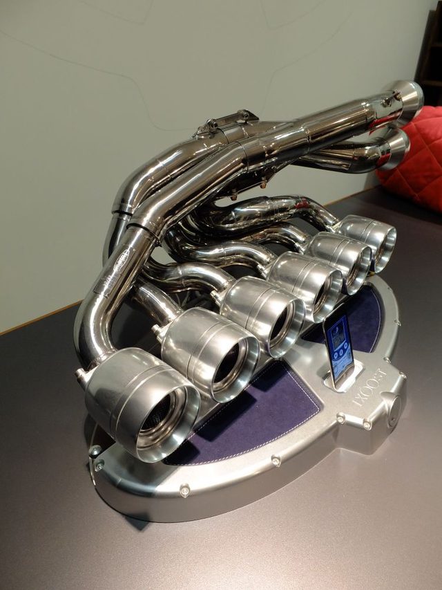 クルマの排気管を利用したサウンドシステムが管楽器みたい!!フェラーリのエンジンサウンドをスピーカーサウンドへ転用したいという発想から作られたという、イタリア・モデナのiXOOST(エキゾースト)が製作したiPhone用サウンドシステムが美しすぎる!!iXOOST(エキゾ...