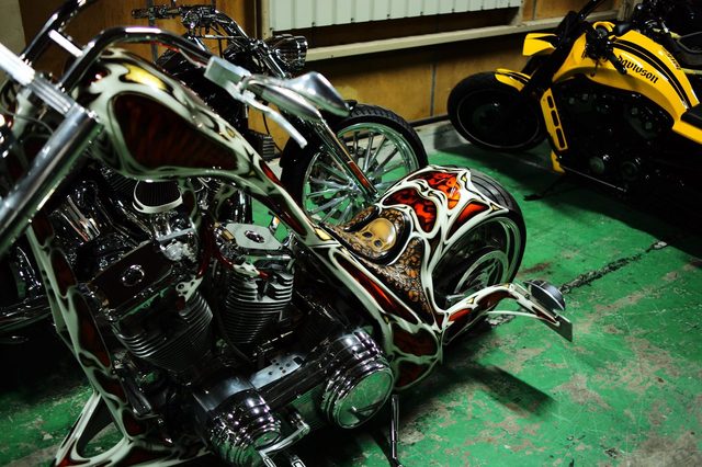 川崎のハーレー専門カスタムビルダー BAD LANDにお邪魔した。前回はオフィスと工場をみせていただいた模様をレポートしたが、倉庫と、そのなかに設置された撮影スタジオもお見せいただいたので、レポートを続ける。前編をお読みになっていない方はこちらから どうぞ。倉庫の中で...