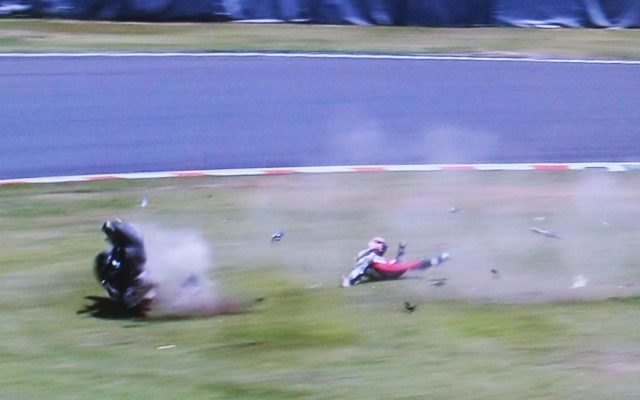 <2015鈴鹿8耐>なんと!まさか!うそー!ほぼ全チームが1回目のピットストップを終え レース開始1時間を過ぎたころ、なんと大事件! なんと高橋巧からバトンを受けたケーシー・ストーナーが ヘアピン進入、110Rでフロントをダートに落とし 大転倒を喫してしまいました! マシ...