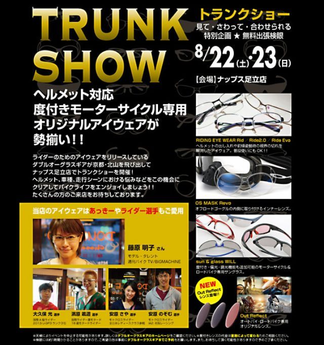 ダブルオーグラスギアが出張フィッティングを足立ナップスで開催ダブルオーグラスギアが8月22・23日に足立ナップスで無料出張フィッティングを開催するnews.bikebros.co.jp