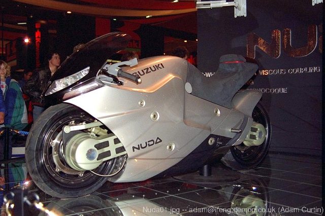 みなさんSUZUKIのコンセプトバイク「NUDA」って知っていますか?1987年SUZUKIのコンセプトバイク「NUDA」www.suzukicycles.orgコンセプトバイクとは通常走らないものですが、このNODAは「実際に走ること」がテーマ。カーボン・ファイバー製でモノコック・フレーム。エンジンはGXS-R750Rの油冷エンジンのヘッドを水冷化。そして一般的なステアリングハブではなく、パワーステアリングを搭載。おまけにフルタイム・フルオートの2WDの駆動システムが特徴的!見た目は割と普通のような気がしますが、中身は最新システムが組みこまれた超ハイテクで近未来バイクなんですね!テストライダーは怖がるほどのバイクだったのだとか。www.suzukicycles.orgこのNUDAは、1985年の東京モーターショーで発表された「ファルコラスティコ」により現実味を走らせるために作ったそうです!www.totalmotorcycle.comちなみにファルコラスティコはラテン語で「白隼」という意味で現在の「隼」は名前だけ引き継がれたようですね!流体抵抗を用いた電磁ブレーキが入っていたりとか。当時可能なシステムを最大に盛り込むというコンセプトで作られたそうです。こういう取り組みの経緯を追うと、コンセプトバイクってチャレンジ精神があふれていて、夢があるバイクですよね♩