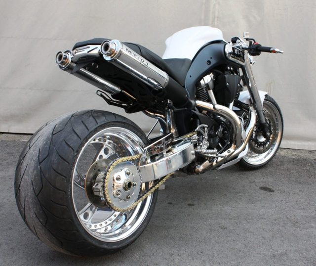 www.usabobbers.com先日のロレンス編集部ツーリングに、友人として同行してくれた元レーサーのヒロシの愛車ヤマハ MT-01は、1700ccという巨大なVツインエンジンを、スポーツネイキッドのフレームに搭載した、とてもユニークなマシンだった。ところが、一般的にはあまり人気が得られなかったのか、2005年から2009年までの5年間しか販売されなかったため、なかなかのマニアックなマシンとなっているようだ。ヒロシも「MT-01はカスタムパーツがほとんど出ていなんっすよぉ」と嘆いていたが、ドイツで製作されたらしい、こんな強者のストリートカスタムを発見したので紹介したい。www.usabobbers.comwww.usabobbers.comwww.usabobbers.com超極太の360ファットタイヤを、ゴツいロングスイングアームが方持ちしている。アームのない車体の左側から見ると、まるでスーパーカーのカスタムホイールのようだね。www.usabobbers.comwww.usabobbers.comwww.usabobbers.com細部にわたるまで作り込まれ、白いタンクにブラックとクロームの機関部のコントラストが、とても美しい仕上がりになっている。MT-01はレアでユニークなマシンとして今後人気がでてくるのか。あるいは不人気車種という属性でアーカイブされてゆくのか。むしろ不人気車種として、中古車市場での値段がこなれていったら、カスタムバイクのベースマシンとして、注目されるかもしれないね。