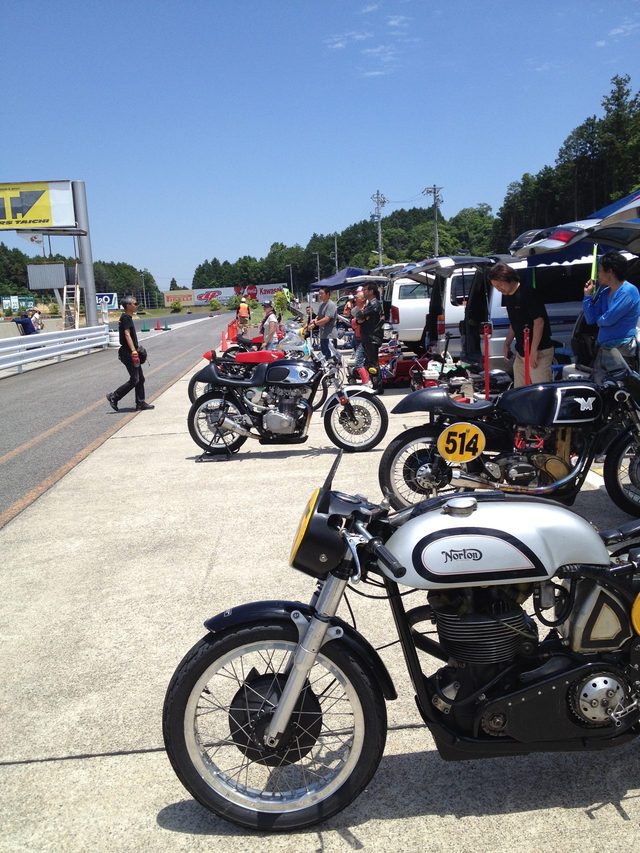 5月31日(日)、三重県・鈴鹿ツインサーキットで開催された、DORC(デッド・オア・ライド・クラシック)に参加してきました。DORとは、カワサキZなどの4気筒クラシックを得意とするショップ、スピードショップ イトウさんが開催するサーキット走行会。すでにサーキットを走り慣れた人はもちろん、サーキットを走行したことのない初心者にも楽しんでいただける走行会を心がけた、非常に良心的なイベントです。そんなDORの趣旨は人々の共感を集め多くの参加者を集めていますが、今回は初めてクラシック(1972年以前生産車、およびそれに準じる車両)を対象にしたDORCが併催されました。1972年以前のクラシックを対象にしたロードレースイベントや走行会は近年関東偏在と言え、関西をはじめ西日本の愛好家はわざわざ東日本方面へ遠征しないと走る機会がない、という状況が続いていました。西日本でもそういう機会を、という人々の想いをくんで、今回DORCが企画されたというわけです。最初の参加台数は22台。ここから始まるムーブメントに期待!ロレンス編集部の宮﨑は、手前のマンクス・ノートンと、ホンダC200で2クラスにエントリーしました。果たしてどれだけの参加者がいるのか・・・については、主催者側も大いに不安があったと思います。結果をいえば、小さい排気量のクラス11台、大きい排気量のクラス11台・・・と、通常4クラス各20台ずつ=80台をベースに企画するDORとしては、少ない台数(18台不足)に留まってしまいました。今回、関東以北方面から参加したのはわずか4台ほど。10数年前には一切その手のイベントがなく、わざわざ西日本のイベントに関東以北勢が参加していたのも今はいずこ・・・目下走行機会に恵まれた東日本のクラシックファンにとっては、あえて西に行かなくても・・・という心理が強くはたらいたのかもしれません。関東以北のファンの動員が今後も見込めないと仮定した場合、DORCを継続していくためには、より一層距離的に参加しやすい環境にある、「西」のクラシックファンたちの動員を頑張らないといけないのかもしれません。・・・まぁ、そういうハナシはさておき、記念すべき第一回となるDORCは、参加しなかったらそのことを暫く後悔するくらい、楽しいイベントでした。走行する機会が午前に3回(15分ずつ)、午後は参加者希望制の模擬レースがあり、さらにその後にも走行機会がある・・・マジメにすべてガンガン走ったら、お腹いっぱいになるくらい「走った感」を味わえます。2クラスに参加した私は、翌日筋肉痛で動けませんでした・・・(苦笑)。コースは典型的なゴー&ストップ型。スロットルアケアケで攻められるコーナーが少ないので、ブレーキが貧弱なクラシックロードレーサーには非常に難易度が高いです。しかし、クラシックロードレーサーのライディングスキルを向上させるトレーニングとしては、これほど最適なコースもないと言えます。推察ですが、この翌日に筑波サーキットや袖ヶ浦フォレストレースウェイを走ったら、誰もが数秒タイムを短縮できるのではないでしょうか? それくらい、攻め応えのあるコースといえるでしょう。参加車両を紹介しま〜す地元、鈴鹿から参加した岩崎さんの戦線型サンビームTT80。イベント前日の土曜日の夜、私は岩崎家のお世話になりました。ありがとうございました。京都から参加の森さんのF.B.モンディアル200。イタリアンならではの造形美に注目!OVER RACING代表の佐藤さん(左)は、ホンダCB450レーサーで参加。模擬レース(速いクラス)ではぶっちぎりの優勝でした。愛知・小牧の「改華堂」の小川さんは、ラビットツーリングS302レーサーで参戦。私のホンダC200の仮想敵(笑)でした。滋賀・大津のベリーバッズ代表杉本さんのBSA A65。大阪の田島さんのホンダCB500Fレーサー。往年のRSC木山号です!コチラはDORCではなく、DOR参加車両ですけど、モリワキ世代(?)には涙チョチョ切れなので、掲載させていただきました(笑)。生きて走ることの喜び・・・。さてDORですが、走行会の表題に「Dead」という不穏な言葉を用いていることについて、違和感を覚える方もいらっしゃるみたいです。しかし、その趣旨については、こちらの主催者のブログの引用をご覧いただければ、ご理解いただけると思います。以前、伊藤からちらっと聞いた話ですが。バイクに乗っていると、桁違いの人がたくさんいると。そんな人達の背中を見ながら、憧れながら走ってきたそうです。そんな人達が、怪我をする姿やいなくなってしまう姿を見てきたそう。「こんなに上手い人がこんな事になるなんて、どうすれば良いんだ」上手くなるしかない、安全に乗れるようになるしかない。バイクで不幸なことがあってはいけない。DEAD or RIDE、死ぬか乗るか。バイクは楽しくも危ない乗り物です。乗り続ける限り、危険と隣り合わせです。死なない為には乗るしかない。常に意識してバイクに乗らなきゃいけない、上手くならなきゃいけない。と思ったそうです
