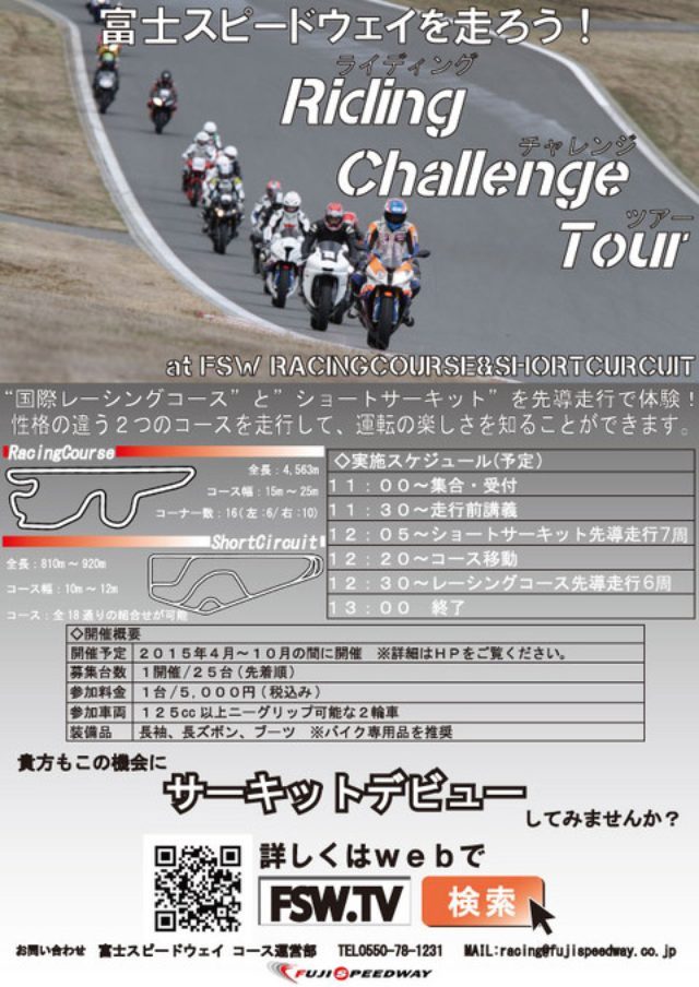 富士スピードウェイが体験走行会を開催!メインストレートが約1.5kmという、世界的に見ても 珍しいコースレイアウトの富士スピードウェイ国際レーシングコース。 かつてはF1の舞台にもなっていたので、ご存知の方も多いのでは。 その富士スピードウェイが先導走行付きの体験走行会を開催。 走行会では、国際レーシングコースの他に、 アップダウンが激しいテクニカルコース「ショートサーキット」も走行。 1度に2つのコースを体験できるのだ。 参加料金は1台5000円で、革ツナギは不要なので、 ライセンスの取得を考えている方はもちろん、 初めてのサーキット走行という方にもオススメだ。www.autoby.jp