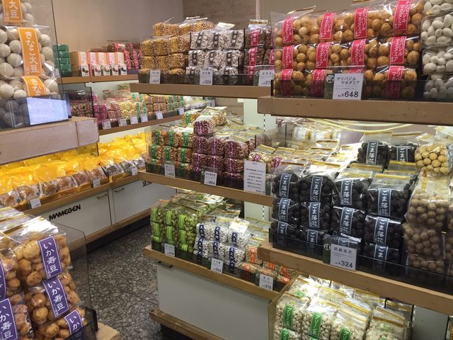 人気の街、麻布十番。休日には多くの人が訪れるこの街には、多くの和菓子店がある。その中でもひときわ賑わっているのが、今回紹介する「豆源本店」。お土産や贈り物にぴったりの見た目にも楽しい豆菓子や、揚げたてアツアツの塩おかきなどで多くの人々に愛されている豆源。一体どのような豆菓子店なのだろうか?色とりどり、様々な味の豆菓子は眺めているだけでも楽しい麻布十番 豆源本店麻布十番の本店に足を踏み入れると、色とりどりの豆菓子や揚げたてのおかきなど、たくさんの菓子が置かれている。豆菓子の種類は、約50種類。一番人気は、青海苔、きざみ海苔、エビの3つの味が1袋に収まった「おとぼけ豆」。その他にも、梅落花、抹茶、青りんご、ヨーグルトナッツ、キャラメルマカダミアなど、多彩な味の豆菓子がある。小さめの袋にカラフルなシールを用いた包装は見た目も可愛らしく、贈り物やお土産にぴったり。美しいよもぎ色や桜色の豆が並ぶ陳列棚は、目に入った瞬間に心が躍り「全部欲しい!」と思ってしまう。人気の抹茶豆は、サクッとした軽い食感の豆に渋みのある甘さの抹茶がコーティングされており、いくらでも食べられる美味しさ。女性が喜ぶこと間違い無しの豆菓子である。アツアツ!揚げたての塩おかきは、やみつきになる美味しさ麻布十番 豆源本店店内の左側では、高温の胡麻油と米油で揚げられたおかきが販売されている。この香ばしい油の匂いにつれられて店に入る人も多い。おかきの生地はひとつひとつ丁寧に天日干しされ、その後高温の油カリッと揚げられる。そして最後にサッと塩をふる、昔ながらのシンプルな製法。その美味しさは、まさに看板の味。11:00~13:00、14:00~16:00 頃に店を訪れれば、揚げたてのおかきを食べることができる。塩おかきと醤油おかきの二種類があり、どちらも美味しいが、個人的には塩おかきの方がオススメ。ビールにぴったり、最高のおつまみである。おかきや豆菓子は取り寄せも可能麻布十番 豆源本店おかきや豆菓子は豆源のホームページから取り寄せも可能。詰め合わせも出来るので、ちょっとしたお礼や手土産にも重宝しそうだ。おつまみに塩おかき、贈り物に豆菓子など、様々な方法で豆源を活用してもらいたい。店舗のご案内・豆源・麻布十番本店百三十有余年の歴史を誇る豆源。100種類以上を数える豆菓子と、その他に季節に合わせた商品などを取り揃え、長きに渡り愛されてきた老舗です。麻布十番に本店を構え、各百貨店にも出店しています。www.mamegen.com