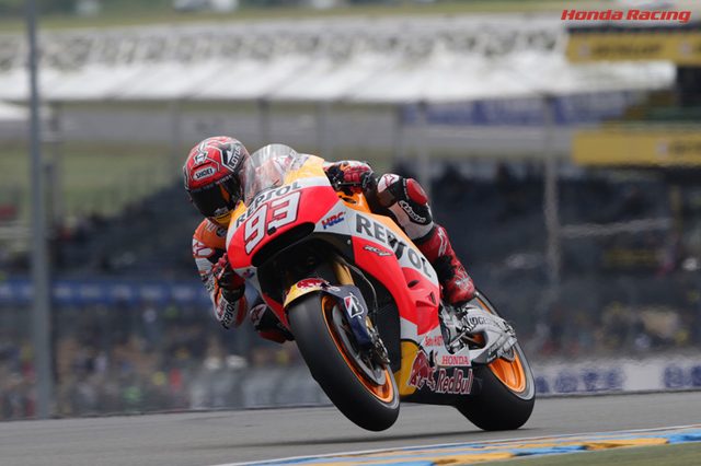 PPゲットはマルケス!www.honda.co.jp小雨が降ったり止んだりする不安定な空模様の中、フランスGP予選はなんとかドライコンディションのまま終了。最終的にポールポジションをゲットしたのはホンダのマルク・マルケス。ロレンソは3位に落ち、ロッシは7位に止まりました。腕上がりの手術を受け、第3・4戦をスキップしたペロドサは8位、という結果です。二人のアンドレッティこと、ドゥカティのドヴィツィオーゾとイアンノーネは3位と5位と、相変わらずの安定ぶり。優勝は果たしてあるでしょうか??1 マルク・マルケス Honda2 A.ドヴィツィオーゾ ドゥカティ3 J.ロレンソ ヤマハ4 カル・クラッチロー Honda5 A.イアンノーネ ドゥカティ6 B.スミス ヤマハ7 V.ロッシ ヤマハ8 ダニ・ペドロサ Honda9 D.ペトルッチ ドゥカティ10 A.エスパルガロ スズキwww.honda.co.jp
