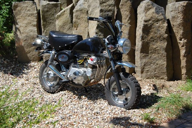 1960年代のデビュー以来、本来のユーザー層であるキッズたちだけでなく、大人たちまで夢中にさせているのがホンダモンキーシリーズです。スーパーカブ系4ストローク水平50cc単気筒を、小さなボディに搭載。カスタムパーツがふんだんに用意されているので、改造する楽しみがほぼ無限にあることが大きな魅力です。スペシャルパーツ武川などのカスタムパーツを予算を気にせずにガンガン組んでいけば、DOHCやデスモヘッドのスペシャルモンキーが作れます。しかし、ここに紹介するモンキーのような、125cc4気筒はさすがに無理です(笑)。その姿と排気音のギャップを楽しんでください。モンキーの車体サイズと、4気筒エンジンのサイズのバランスも絶妙です。www.wirthwein-motor.deこの4気筒モンキーを製作したのは、ディーター・ハルトマン-ヴィルトヴァインさん。まるで模型のような4気筒エンジンですが、ちゃんと人を載せてしっかり走ります。車椅子の上で笑顔を見せるのが、製作者のディーターさんです。後ろは奥様のペトラさん、そして右は息子のファビアンさんです。www.motocykl-online.cz自作の4気筒シリンダーが、オリジナルモンキーのクランクケースにつながる構造です。www.motocykl-online.cz動弁方式はOHCで、カムシャフト駆動はコグドベルトによるもの。ポートの小ささに注目してください。www.motocykl-online.cz//www.youtube.com/embed/BOuVBV4Jq6g?rel=0Vierzylinder-Monkeyyoutu.beこちらのムービーでは、ディーターさんの4気筒の走行シーンを見ることができます。遠目にはフツーのモンキーなのに、サウンドはまるで1960年代のグランプリロードレーサー、ホンダRC4気筒のようなので、そのギャップに思わず笑みがこぼれてしまいます。いやいや、世の中には面白いモーターサイクルを作る人がいるものですね〜。