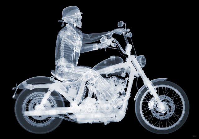 みなさんも一度や二度は、X線撮影を病院で受けたことはあると思います。放射線の特性を利用して撮影された体内の写真に、なんとも神秘的な印象を抱いてしまったりします(私だけでしょうか?)。世の中には、そんなX線写真によるアート表現にこだわる人もいるのです。1962年にロンドンに生まれたニック・ヴィーシーは、X線を使った透過写真を専門とする芸術写真家です。撮影対象は人間、動物、機械などなど・・・もちろん!? モーターサイクルも対象に入っています。その幻想的な作品をご堪能ください。イラストでは描かれることの多い「スケルトンライダー」ですが、これはそのリアル版ですね。もっともモーターサイクルもスケスケ・・・という描かれ方はしませんが(笑)。helix-mag.com1941年型マチレスG3L(4ストロークOHV単気筒350cc)。www.nickveasey.com1928年型アリエル・モデルE(4ストロークOHV単気筒・2ポート500cc)。cyrilhuzeblog.com1915年型インディアン・モデルG(4ストロークV型2気筒682cc)。www.wired.com1914年型ダグラス3-1/2(4ストローク水平対向2気筒サイドバルブ496cc)。www.wired.com写真集「X-RAY」などニック・ヴィーシーの写真集は、日本でも洋書店やアマゾンなどで購入することができます。モーターサイクル以外も面白い作品がいっぱい掲載されていますので、興味ある方はぜひチェックしてください。ハードカバー 224ページ ・英語版ISBN-10: 0670020400ISBN-13: 978-0670020409www.parkablogs.com