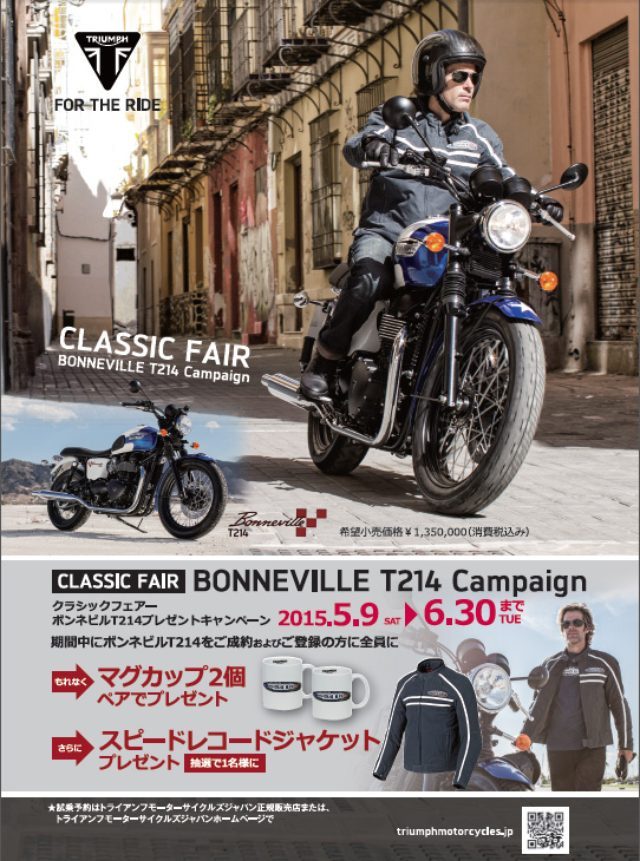 【トライアンフ】ボンネビルT214購入キャンペーントライアンフは、ボンネビルT214の購入者を対象にキャンペーンを実施するnews.bikebros.co.jp
