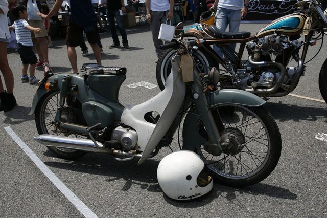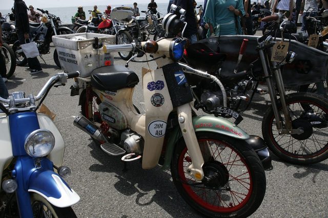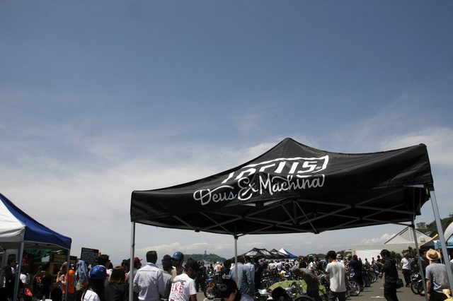 5月3日。これ以上ないという晴天の青空の下で、Deus Ex Machina主催のカスタムコンテスト「BIKE BUILD OFF 2015/バイク・ビルド・オフ」が開催された。オーストラリアのシドニーで誕生したアパレルブランド、デウス・エクス・マキナはカスタムバイクとサーフカルチャーを融合させた独特の世界観を展開している。そのデウスが毎年開催しているカスタムバイクイベント「BIKE BUILD OFF 2015/バイク・ビルド・オフ」は、デウスSHOPがあるシドニー、ロサンゼルス、バリ、ミラノの4都市に、日本では初開催となる鎌倉市七里ヶ浜駐車場を加えて、この日に世界同時開催された。カスタムバイクとサーフカルチャーのブランドらしく、会場の目の前に広がる七里ケ浜では、朝からサーファー達が気持ち良さそうに波をつかまえていた。本部テントの前にはど〜んとエルカミーノが鎮座しているのも気分が盛り上がる。ハンバーガーやピザなどを販売する、色とりどりのフードトラックも青い空に映えていて、ここが鎌倉だということをつい忘れそうになるほど、会場はデウスの作り出す世界観が漂っている。ずらりと並べられたエントリーマシンの間を、観客とビルダーたちが気ままに時を過ごす。駐車場というパブリックスペースを会場としているため、ステージらしきスペースも設置されていなく、特に開会を告げるアナウンスもない。心地いい海風に吹かれながら、カスタムバイクに囲まれて時を過ごすだけ。「BIKE BUILD OFF」のコンセプトは “お金を掛けず、何にもとらわれず、己の工夫と果てることの無いバイクへの熱い情熱で作りあげるカスタムバイクコンテスト” というもので、いくつかのルールを満たせばどんなバイクでも参加できる。このなんともおおらかと言うか、そこはかとない自由な空気に満ちあふれているのが最も印象的だった。この「BIKE BUILD OFF 2015」を様々な角度からレーポートしてゆくが、まずは記念すべき第一回にエントリーした全てのマシンを紹介してゆこう。エントリー台数は89台とのことだったが、会場に展示されたのは全部で83台。ご覧いただけたらお分かりになると思うが、とにかくどれも個性的で自由な発想のものばかりだ。この自由さをそのままお伝えした方がいいと思い、並び順でそのままご紹介したいと思う。このこれまでにないユニークなカスタムショーの雰囲気がよく伝わると思う。【GW Special】BIKE BUILD OFF 2015 に集結した日本のカスタムバイク達 - その2 に続く。