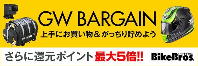 バイクブロス通販で連休中はポイント変倍セールを実施バイクブロス通販では5月3~6日の連休中にポイントが2倍以上となる「ポイント変倍セール」を開催news.bikebros.co.jp