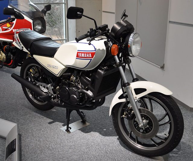 峠じゃ最強!のナナハンキラーRZ250(4L3)ja.wikipedia.org1980年8月に株式会社ヤマハ発動機から販売された国内向け専用の250ccのオートバイ車名である。1970年代、北米を中心に自動車排出ガス規制が強化され、2ストロークエンジンの使用が厳しくなってゆく中、最後の2ストロークスポーツモデルを作るという思想から誕生した。ja.wikipedia.orgナナハンキラーと称されたのは、実際には兄貴分にあたる RZ350ですが、やっぱり若者が諸手を挙げて歓迎した最初のモデル RZ250のほうに、思い入れは強いです。いまのストリートファイターと呼ばれるようなスポーツネイキッドの元祖と言えるのが、このRZではないでしょうか。不良ぽさ全開、峠で膝擦りをチャレンジしなければ男じゃない的なムード満載のRZ250は、やんちゃな遊び道具そのもの。いまどきのバイクの、優等生ムードはほんの髪の毛ほどもありません。250ccは当時もいまも維持費は安いし、車検がないことで、ほどほどのカスタムなら問題になりづらいということがあって、ボアアップを含むさまざまなチューンが試されました。車重の軽さを生かした加速は凄まじく、峠ならナナハン(750cc。1980年当時は国内用バイクの最大排気量は750cc まででした)をカモれる!ということで、若者がこぞって買った大人気バイクです。いやあ、憧れます〜空前のバイクブームを誘引したRZシリーズRZ250/350の発表は1979年。日本より一足早く、9月のパリショーにRD250LC/350LC(LC=リキッド・クール、水冷の意)という名称で登場すると、同年10月に開催された「第23回東京モーターショー」のヤマハブースは、すでに二輪専門誌で情報をつかんでいた大勢のモーターサイクルファンによって埋め尽くされた。この時、RZ250に付されたスペックはパリショーのRD250LCよりもやや控えめな数値(33PS/8500r/min、乾燥重量134kg)だったが、存在感のあるパールホワイトの燃料タンクに加え、火炎イメージのキャストホイール、多段チャンバータイプのテールアップマフラー、特徴的な黒く大きなラジエター、アルミ製バフ仕上げのフートステップブラケットなど、流麗で挑戦的なフォルムを構成するパーツの一つひとつがファンの目を釘づけにした。そして、RZ250の話題一色に染まった東京モーターショーが終わると、全国の販売店に予約が殺到。各地で開催された試乗会にもかつてないほど多くのファンが押しかけ、1980年8月の発売からまもなく、RZ250は計画台数を大幅に超える販売を記録した。さらに1981年、"ナナハンキラー"と呼ばれたRZ350が登場するとRZシリーズの人気は頂点に達し、終焉を迎えるはずだった2ストロークスポーツは相次ぐ競合他社の参入によって再び息を吹き返した。しかもその勢いは止まることを知らず、250cc、400ccの"ロードレーサーレプリカ"モデルが大型化へ向かいつつあった国内モーターサイクル市場の流れを変え、やがて空前のバイクブームを牽引していくのである。global.yamaha-motor.comRZ250 開発ストーリー - 企業情報 | ヤマハ発動機株式会社 企業情報展示コレクションの関連情報,[企業情報]global.yamaha-motor.com中古市場も高値推移・・・gooBikeさんで調べてみると、安いタマで50-60万円、程度次第では100万円超えもあって、やっぱりいまだに人気のようです。平均で70万円くらい???ってことでしょうか。カラーはやっぱり、白がいいですね。RZ250(ヤマハ RZ250)のことならGooBike(グーバイク) | RZ250の新車・中古バイク情報国内最大級のバイク情報からヤマハ RZ250のバイクを探せます。www.goobike.com