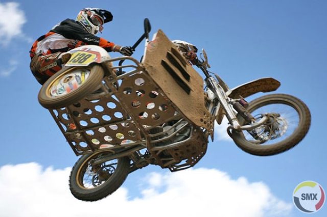 日本ではまったく馴染みがないですが、欧州を中心に根強い人気を誇るモータースポーツが、サイドカークロス=サイドカーのモトクロスです。ライダーとパッセンジャーが協力し合い、サイドカーでオフロードを飛んだり跳ねたり・・・。当然サイドカーはソロに比べて大きいので、その様は迫力があります。頭上を飛ぶサイドカー。こんな位置から見上げたら・・・コワイです(笑)www.mxcircuit.fr1930年代から欧州でスタート正確な歴史は申し訳ありませんがわかりません・・・ただ1930年代からサイドカーのモトクロスは行われていたみたいです。世界選手権がスタートしたのは1980年からですが、1971年には欧州選手権がはじまっていました。1970年代に活躍した、ノートン-WASP。当時からフロントサスペンションは、剛性に優れるリーディングリンク式が主流でしたc2.staticflickr.com排気量は2ストロークが350〜750cc、4ストロークが1000ccまで。1990年代半ばまではカワサキKX500やホンダCR500などのエンジンが人気でしたが、以降はZabelやMTHなど、サイドカークロス用の2ストローク650〜750ccが主流になりました。Zabel製2ストローク750cc単気筒www.motomag.com車体はEML、VMCなどのコンストラクターが製作したサイドカークロス専用設計で、近年はWSP製車体が5年連続でタイトルを獲得しています。ソロのモトクロスはアルミフレームが流行ってますが、サイドカークロスはスチールチューブラーが依然主流のようです。ハスクバーナ4ストロークを搭載するWSP。フレームワークに注目www.wspsidecar.nl日本では残念ながらサイドカークロスを見ることができませんので、YouTubeで楽しむことにしましょう(笑)。こちらは2014年度のヨーロピアン・ネイションズ(国別対抗戦)のムービーです。ちなみにアメリカやオーストラリアでもサイドカークロスは行われますが、その規模は欧州にくらべるとかなり小さいです。//www.youtube.com/embed/7homyRe4p_g?rel=0Sidecarcross of European Nations 2014, Markelo, The Netherlandsyoutu.be