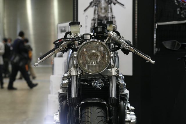 1973年に創業した「モリワキエンジニアリング」は、世界のレーシングシーンにおいて数々の偉業を刻んできた、日本に冠たるレーシングコンストラクターです。年輩の世代ならヨシムラと同様に、赤地に白く抜かれたカタカナのモリワキステッカーを、誇らしげに愛車に貼った覚えがある方も多いのでは。あるいは鈴鹿8時間耐久レースでのモリワキモンスターの伝説に胸を熱くした若い頃の思いででしょうか。第42回東京モーターサイクルショーでは、世界的に注目が集まっているカスタムシーンに応えるように、欧米メーカーを中心としてメーカーカスタムも多数展示されていましたが、その中でも完成度と存在感で異彩を放っていたのが、このモリワキ「CB1100 EX Cafe」です。ひときわ目を惹く美しいタンク・シートは、アルミから総削り出しされ高度な技術で溶接された造形美が、力強いCB1100EXのエンジンと相まり絶妙なクラシックテイストを醸し出しています。モリワキといえばもちろんエキゾーストシステムですが、4本だしのストレートなマフラーをはじめ、トップブリッジや各部のステーやカバー類に至るまでオリジナルで製作されたカフェレーサーは、世界中のカスタムコンストラクターたちが息をのむ音が聞こえてきそうな仕上がりです。2014年11月に鈴鹿サーキットで開催された創業40周年記念イベント「モリワキ祭」で初公開されたこのカフェレーサーは、「モノづくりの楽しさを豪快に追求する」というコンセプトにより、最新の5軸マシニング機や三次元プリンターなどを駆使して開発・製作され、カスタムとしては究極の贅をつくしたモリワキ渾身のスペシャルモデルです。これらのパーツは一部を除き商品化も視野に入れているというので楽しみですね。