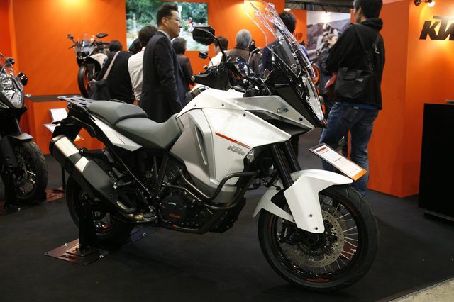 オーストリアの名門・KTMブースに鎮座していたのは「KTM 1290 SUPER ADVENTURE」。まず、ひときわ巨大な車体に圧倒されます。KTMはヨーロッパのオフロードバイクメーカーとして最高峰のひとつで、モトクロスやエンデューロの世界選手権はもちろん、近年は南米のダカールラリーで14連勝中というアドベンチャーレースでは不動の王者となっています。そんなKTMはBMWと並び早くからアドベンチャーモデルをラインナップしていましたが、MotoGPへの参戦やDUKEというユニークなオンロードバイクで独自の路線を歩んできました。古いバイク乗りの私としてはやはりエッジの効いた、エンデューロバイクメーカーという印象が強いのですが、この「1290 SUPER ADVENTURE」はダカールラリーの王者にふさわしい堂々とした風格を持っています。いわばオフロードバイクの専門メーカーといえる老舗によるスポーツアドベンチャー。その威風堂々たるボディに跨がればおのずといつものツーリングが冒険の旅となるに違いないでしょう。
