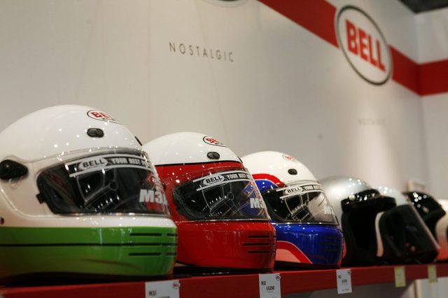 東京モーターサイクルショーは各社の最新バイクを見るのも楽しみですが、様々な周辺メーカーの出店も見逃せません。そんな中からバイクに乗る時にはかかせないヘルメットの展示をご紹介します。まずはバイク用のフルフェイスヘルメットを世界で初めて発売した「BELL」(間違ってたらごめんなさい)のラインナップ。ネイキッドの80年代スーパーバイクのイメージならBELLで間違いないです。アクティブの小山さんにお聞きしたところ、一番人気はカーボン製のモデルだそうです。やはりずっと頭にのっかっているものなので軽いにこしたことはありませんね。RS TAICHIブースの「HJC」ホルヘ・ロレンスモデル。「Kabuto」はグラフィックがカッコいいですね。ボク的にツボだったのは懐かしさを感じる「NOLAN」。かつて世界グランプリでコーク・バリントンやフランコ・ウンチーニが被っていたヘルメットメーカーで、最近ですとケーシー・ストーナーが有名ですね。FRPが主流だったヘルメットにポリカーボネイトを採用するなど革新的な試みをしていたメーカーです。イタリアのメーカーらしいデザインは昔からどこか宇宙飛行士を思わせるようなものでしたが、このN44もその期待を裏切りませんでした。フルフェイスヘルメットからジェットタイプやオフロードタイプへとスタイルを変えられます。オフロードタイプに変態したNOLAN。アドベンチャースタイルの人気とともに、ヘルメットもこういったクロスオーバースタイルがラインナップされるようになりましたが、さすがのイタリアンブランドはデザインセンスがひと味違うようです。ヘルメット業界でトップブランドの「SHOEI」。トップライダーが被っていたヘルメットはまるで宝石のような美しさです。同じく業界の王者「Arai」。シールドのサインがまぶしいですね。
