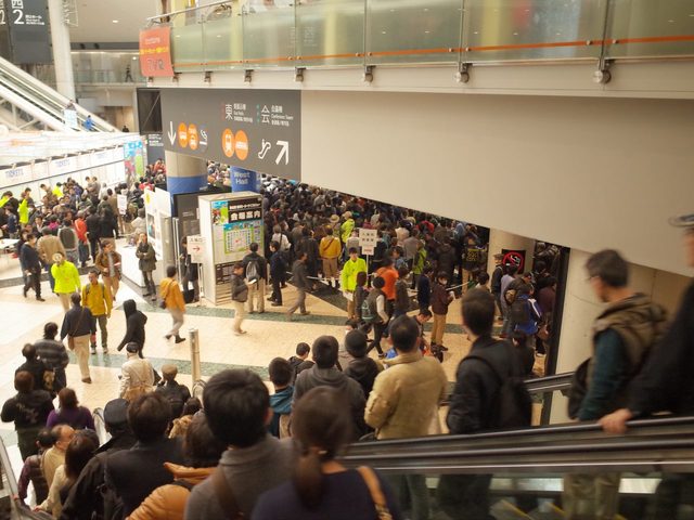 今年のモーターサイクルショーは、思っていたよりもずっと盛況で、かつ女性向け、もしくは家族向けの目線が強かったような気がします。やはりリターンライダーブーム、ということなのでしょうか。各メーカーとも、もちろんレース用車両の展示はしていたし、スーパースポーツのデモ車両も多かったけれど、パワーとかスピードというよりは乗りやすさや快適、もしくはオシャレな印象を前に出そうとしていたように思いました。(実は期待していた)各ブースのキャンペーンガールの皆さんの露出も控えめで上品、家族連れにむけても穏やかな印象を与えるべく抑えていた感じもしたし。全体的に、オトナの趣味へとオートバイが変化していく、そういう印象を受けましたね。編集長が特集しているようにアドベンチャーバイクも多かったし、ストリートバイクのカリカリのチューンドなんて、ほとんどありませんでした。これは少し寂しさを感じもしましたが、でも、市場を大きくしていく、という意味では正しい方向なんでしょうね。トーマス、そう思いました。場内溢れる大観衆。若いカップルの姿も多かった!人。人。人。
