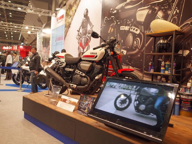 BOLTNinja H2と最速を争うYZF-R1YAMAHAのブースは、YZF-R1などのスーパースポーツも展示しながら、どちらかというとBOLT推しですね。よりカジュアル。ワイルドさよりも、マイルドな印象です。リターンライダーもさることながら、やはり女性ライダーへのアピールを感じました。