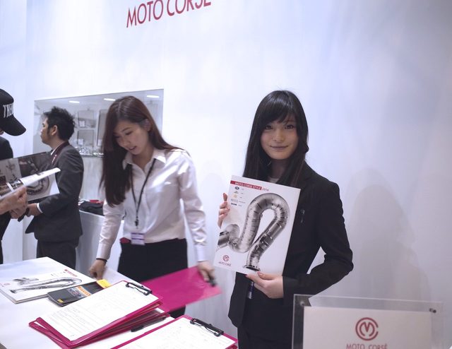 MOTOR CORSEブースにて今回のモーターサイクルショーの美女探しはKoda記者任せ、ということだったんですが、黒髪のお姉さんがどうにも輝いていたので、パチリwキャスターの大江麻理子さんに似てませんか??