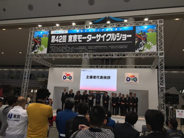 主催者の皆様の挨拶二上編集長、小川発起人、宮崎記者、Koda記者、トーマスにてロレンスクルー、モーターサイクルショ会場に取材に来ました!これからライブ取材をしていきます。いつ記事にするの?今でしょ!(宮崎さんばりに古いネタ^o^)