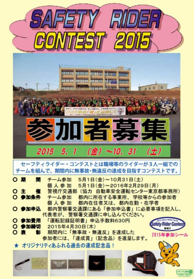警視庁「セーフティライダー・コンテスト」開催...3人1組で無事故・無違反を目指すresponse.jp