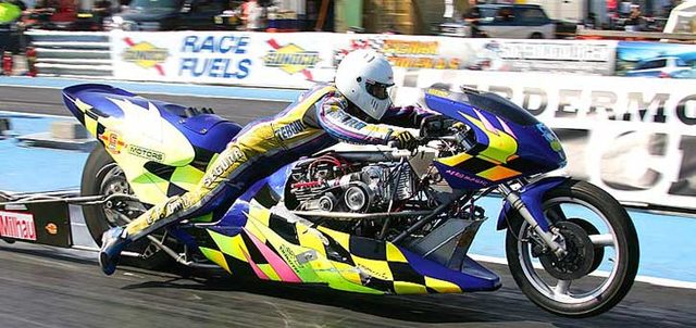 バイク好きのみなさまこんにちは。さっそく今日も新しいバイク用語勉強していきましょう!今日の教えてワードはこちら。ドラッグド、ドド、ドラッグ??インパクト強すぎて一瞬動揺してしまいましたが、これもどうやら「ドラッグレース」というレースの名前のようです。ドラッグレーサーとはどんな人たちなのか気になったので、ちょこっと調べてみたのですが...www.hayabusa.orgwww.cycledrag.comwww.bbc.co.ukちょっと待って!!なんですかこの乗り方は!!!ほぼ寝ちゃっているじゃありませんか!!この体制はバイクを運転するというか、もはや完全にバイクが主導権握って見えるのは気のせいでしょうか?こんな格好で本当にハンドル動かしたりしちゃって良いのですか?これで車道走っていたら完全にふざけていると思われて怒られますよ、おにいさん。。。ドラッグレーサー...恐るべしです...。いろいろ謎が多いですが、「ドラッグレース」とは一体どんなレースのことなのでしょう?教えて、ロレンス編集長〜♡はい、お答えします。「ドラッグレース」はアメリカが発祥のクルマやバイクのレースの一種です。ドラッグレースはモータースポーツの中でも最も単純なレースかもしれません。そのルールは1/4マイル(約402m)の直線路に2台のバイク(またはクルマ)が並んで、ヨーイドンでスタートしてどちらが早くゴールラインを通り過ぎられるかを競うだけなのです。0〜400mのスピードを競うことから、日本ではよく「ゼロヨン」と呼ばれていました。ドラッグレースは直線を走るだけという単純さから、乱暴な言い方をするとまっすぐ走ることができれば、どんなバイクでも競うことができるので、出場車両のレギュレーションが細かくわかれていることも多く、普通にツーリングなどで使っている公道用のバイクから、ドラッグレース専用のマシンまで様々です。アキちゃんが驚いているのはその中でも最速クラスの「トップフューエル」と呼ばれるマシンです。このクラスはスタートして400m先のゴールラインを通過するのになんと6秒もかかりません。ゴールラインでの速度は時速400km/h近くに達します。どれくらい速いか想像がつくでしょうか。またこのドラッグレース専用のマシンは、曲がることを全く想定していないので、ご覧のようにリアタイヤは専用の超極太タイヤですし、直進性を高めるため前輪と後輪の間までの長さ(ホイールベース)もこれ以上伸ばせないってくらい長くなっています。なのでバイクとしてまたがって操作するには限界ってスタイルで乗ることになっちゃってますね。さらに驚きなのはこのクラスになるとエンジンはどんなに改造してもよく、燃料はガソリンではなくニトロメタンという特殊なものだし、エンジンを2つ並べて載せたものや、さらに3つ並べたマシンすら存在します。直線を速く走ることができるのなら手段を選ばないっていうことなのでしょうね。なんて男前な発想なのでしょうか。ちなみにこの「ドラッグ」、もちろんキレッキレの危険なレースではありますが、そっちのお薬を意味するドラッグ「Drug」ではなく、こちらは「Drag」で「〜を引っ張る」という意味です。ドラッグレースの語源は定かではありませんが、軍用の戦闘機などの機体の後方には「ドラッグシュート」という小型パラシュートが装備されて、滑走路で停止する際にこのパラシュートを使う機種があります。クルマのドラッグレースでは、ゴール後にこのドラッグシュートのような小型パラシュートで減速することが多いことから、ドラッグレースと呼ばれるようになったのかもしれません。バイクのドラッグレースならロレンスのこちらの記事がオススメですよ。スパイダーマンのレーシングスーツでカッ飛ぶ姿がシビれること請け合いです。● まるでロケットのように走る直線番長「ドラッグレース」