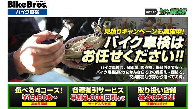 「BikeBros.バイク車検」サービススタートバイクブロスはオートバイ用品専門店「2りんかん」でのバイク車検見積を、バイクブロスサイトから取得できる「BikeBros.バイク車検」サービスをスタートさせたnews.bikebros.co.jp