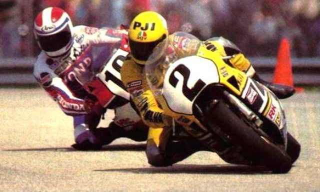 ヤマハのデイトナ200マイル支配が続いた1970年代半ば以降、他のメーカーも単に指をくわえてヤマハの勝利を見続けていたわけではありません。スズキはGPマシンのRG500をベースに、RG700というスペシャルマシンを投入しています。しかし、ヤマハも同じようにGPマシンのYZR500の排気量アップ版を投入し、ライバルに対抗しました。1984年デイトナ、ヤマハ13連勝最後の年のYZR700(0W69)と勝者ケニー・ロバーツ。後ろはフレディ・スペンサー(ホンダ)www.motosclassicas70.com.br結局ヤマハの1972年からの連勝をストップしたのは、「ルール改正」でした。1970年代後半から、フォーミュラ・ヤマハ化により人気がなくなった200マイルに代わり、人々の興味の中心は公道車に近い形態を残した量産車改造の「スーパーバイク」に移っていました。そこで1985年からはスーパーバイククラスが200マイルに採用されることになるのです。スーパーバイク初年度のデイトナ200を制したフレディ・スペンサーとホンダVF750Fwww.vfr-japon.com.ar1986年のウィナー、エディ・ローソンとヤマハFZ750blogs.c.yimg.jp1987年ウィナー、ウェイン・レイニーとホンダVFR750Fwww.riderfiles.com1988年、GSX-Rを駆り、スズキのデイトナ200初制覇をプレゼントしたケビン・シュワンツwww.motorcyclistonline.comローカルレースとなっても、変わらない特別な一戦の価値お気付きかもしれませんが、上にあげた写真に映るライダーはいずれも、最高峰世界GP500ccクラスの王者に輝きました。1980年代は「アメリカン・インベイション」の時代・・・コンチネンタルサーカスはアメリカンライダーの侵略に抗えなかったディケード=10年間でした。ゆえにアメリカ最大のロードレースを制したデイトナ200マイルウィナーに対する世界の注目は、当時非常に高くなっていたといえるでしょう。しかし1990年代に入ってから、デイトナ200マイルウィナーで、世界GP最高峰クラスの王者になったのは、2002年ウィナーのニッキー・ヘイデンのみです。1990年代からはスコット・ラッセル、ミゲール・デュハメル、マット・ムラディンらの米AMA専門ライダーがデイトナ200マイルを支配するようになり、1972年以前同様の「アメリカン・ローカルレース」風に変質していくことになるのです。1994年ウィナーのスコット・ラッセル。200マイル通算5勝は最多勝(タイ)記録webspace.webring.co1996年勝者のミゲール・デュハメル(ホンダRC45)。通算5勝の"Mr.デイトナ"のひとりmiguelduhamel.com2002年勝者で、2006年モトGP王者となったニッキー・ヘイデンとRC51www.motorcycledaily.com2005年からデイトナ200はAMA Formula Xtremeに変更、2009年からはデイトナ・スポーツバイクの規定に変更され、ますますAMAローカルレースっぽくなっていきます。日本でのデイトナ200マイルに関する報道量は1990年代になって極端に減少しましたが、英国人がマン島に、日本人が鈴鹿8耐に、フランス人がボルドールにそれぞれ熱狂するように、デイトナ200マイルはいつの時代も、アメリカのロードレースファンにとっては、特別なレースであることに変わりはないのです。(完)