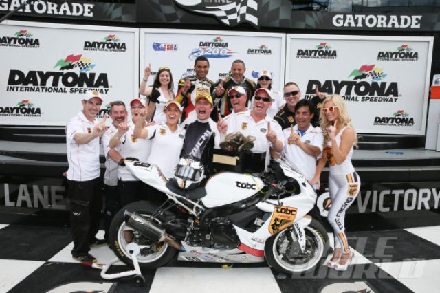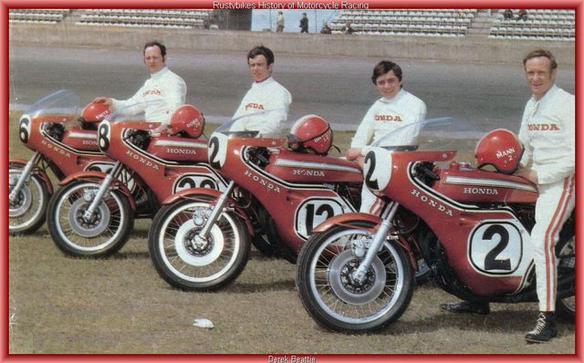 前編、後編でまとめようと思ったのですが、よくよく考えると無理でした(苦笑)。ですので、これを中編とします。F750ルールになって最初の1970年大会を制覇したのは、前年発売のホンダCB750FourをベースにしたCB750Rでした。優勝ライダーは米国人のディック・マン。序列としては元GPライダーのラルフ・ブライアンズら英国人ライダーがエース待遇だったのですが、老兵といえるマンが勝ったのはホンダとしては想定外だったみたいです。1970年ホンダチーム。奥からビル・スミス、トミー・ロブ、ラルフ・ブライアンズ、そしてウィナーのディック・マンrustybikes.hostingsiteforfree.com翌1971年はディック・マンが連勝。車両はBSAロケット3(ロブ・ノースフレーム)。この勝利は英国車最後の200マイル制覇と長らく歴史書の類に記されていたのですが、昨年ダニー・エスリックがトライアンフで勝利したことで、記述が書き換えられることになったのは記憶に新しいです。BSAロケット3を駆るディック・マンwww.motorcycleclassics.comこの1970年代前半を、デイトナ200マイルの黄金期と語る歴史家は多いです。日欧米の750ccマシンに対する世界的注目が高まった当時、各メーカーは格好の宣伝の場となるデイトナ200マイルにこぞってワークスチームを派遣しました。1972年デイトナ、カワサキワークスのH2R軍団blogs.c.yimg.jp1972年デイトナ。ジョディ・ニコラスとスズキTR750www.classic-motorrad.deとりわけ初期F750ルールのデイトナ200マイルで注目を集めたのは、カワサキとスズキの2ストローク3気筒でした。100馬力を超える大パワーを持つこれらのモンスターマシンは、常に優勝候補としてあげられる速さを備えていました。2ストローク車初のデイトナ200マイル勝利を記録するのは、どちらかのメーカー・・・という声がほとんどでした。しかし、当時のタイヤやチェーンなどの周辺技術がこれらモンスターの高性能に追いついていなかったこともあり、カワサキとスズキ陣営はマシントラブルでリタイア・・・というパターンで自滅することが多かったです。1972年はなんと、プライベーターでヤマハTR3(350cc2気筒)に乗るドン・エムデが2ストローク初勝利という快挙を達成しました。ドン・エムデとヤマハTR3vroum52.comこの勝利は、ヤマハにとっても初のデイトナ200マイルでした。当時、その後ヤマハがデイトナ200マイルで13連勝することになると、予想した人はいなかったでしょう。翌1973年はヤーノ・サーリネンがファクトリーの水冷2気筒350cc(YZ634)で、750cc勢を相手に勝利。1974年からはヤマハの本命マシンである4気筒750ccクラスの0W19(700cc)がデイトナデビュー。ジャコモ・アゴスチーニが見事勝利しました。GP最多タイトル記録を持つジャコモ・アゴスチーニとヤマハ0W19www.yamahaclassictwostrokes.nl翌1975年からはTZ750が市販開始。そしてファクトリーのYZR750(0W29)がデイトナ200マイルを支配するようになり、1980年代初頭までの時代「フォーミュラ・ヤマハ」のような様相を呈することになりました。無敵状態のヤマハ勢によるトップ争いが毎年繰り広げられることに、観客たちは飽きたのでしょう。黄金期から一気にデイトナ200人気は、冷え込んでしまうことになるのです。(続く)