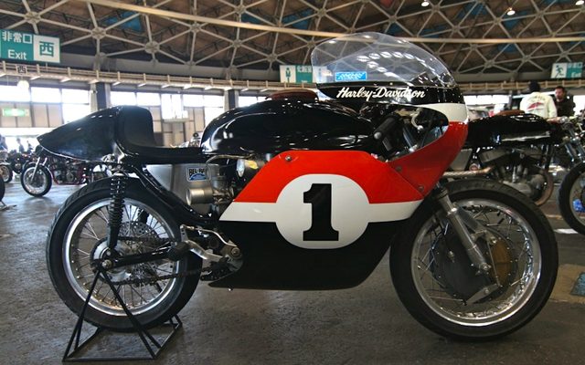 ハーレーダビッドソンというとおおらかなビッグツインエンジンで走る、アメリカンツアラーという印象をお持ちの方は多いのではないでしょうか。ハーレーはかつてはロードレースでも活躍した時代があったのです。こちらは1960年代にアメリカのAMAチャンピオンシップで活躍したKR750レーサー。1952年にデビューしたハーレーの「Kモデル」はいまのスポーツスターの前身となるモデルです。KR750は1970年より現代的で強力なエンジンのXR750にその座を譲ります。こちらはそのXR750レーサー。この歴代のハーレー・レーサーを美しく仕上げていますね。出典:http://www.inazumacafe.com/2015/03/twins.htmlこれは2015年3月14日に名古屋で行われたハーレーダビッドソンの展示会の様子をイタリアのカスタムバイクサイト「イナズマカフェレーサー」に掲載された記事からご紹介しました。こういうのって情報の逆輸入ってことになるんでしょうか (^_^)