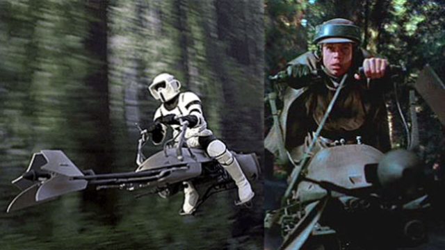 超一流ガジェット情報サイトのGizmodeに、面白いバイクが紹介されていました。バイク・・・といっても実車ではなくおもちゃ、そしてモチーフは今のプロダクトではなく未来の乗り物です。1983年公開の「スターウォーズ・ジェダイの帰還(公開当時の邦題はジェダイの復讐)」で登場した「スピーダーバイク」がおもちゃとはいえ現実のモノになったのは、当時中学生だった私には感慨深いものがあります。夢の空飛ぶバイク出典:http://i.kinja-img.com/gawker-media/image/upload/s--RlM5LsaS--/c_fit,fl_progressive,q_80,w_636/17wnu98896rスターウォーズに登場する「空飛ぶバイク」は、上述のエピソード以外にも登場する人気の乗り物のひとつです。そのスピード感あふれる登場シーンが、ドラマを盛り上げる効果満点なのでしょうね。上映当時映画館にて、鬱蒼とした森の中を走り回るシーンで、スピーダーバイクが倒木に激突スレスレで回避するとき、思わずその迫力に身を屈めてしまったことを思い出します。出典:http://i.kinja-img.com/gawker-media/image/upload/s--kyVgS4_7--/c_fit,fl_progressive,q_80,w_636/このリモコンのスピーダーバイクのおもちゃは、いわゆるドローン(無人飛行機)の技術を応用したものですね。4つのプロペラで浮力を得ており、高度な自動制御技術でひっくり返ることなく空を飛び回ります。子どもの頃、紙飛行機やスチロール飛行機で遊んでいた世代としては、今のおもちゃのハイテクぶりに度肝を抜かれますね(もっともこれは、子供よりも大人向けのおもちゃですけど)。https://www.youtube.com/embed/1lg5YRMJY6I出典:ajw61185今、ドローンは新しい産業創出として世界的な注目を集めており、多くのベンチャーが参入している分野です。目覚ましい技術の発達に法律が追いついていない・・・というありがちなパターンで、航空法やなんやらの新しい法律で今後ドローンにどう対処するか、どこの国も頭を痛めているようです。なにしろ簡単に「兵器への転用」が可能な技術ですからね・・・。その点で私たちが愛するモーターサイクルは平和なものです。実質、第二次世界大戦を経て、モーターサイクルは兵器としては「劣等生」の烙印を押されていますので・・・(4輪ジープが圧倒的に兵器として優秀すぎて、軍用モーターサイクルははるかに見劣りしてしまうのです)。まぁモーターサイクルがふたつホイールをぶら下げている限り、モーターサイクルをスピーダーバイクのように兵器として再び積極的に活用しようというマヌケな権力者はいないでしょうね(笑)。