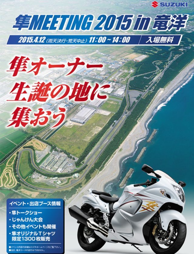 【スズキ】隼ミーティング2015in竜洋4/12開催スズキは、隼ミーティング2015 in 竜洋を2015年4月12日に開催するnews.bikebros.co.jp