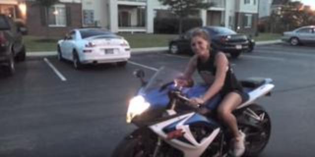 この女性、どうやら新しくSUZUKI GSX-Rを新調したようです。
