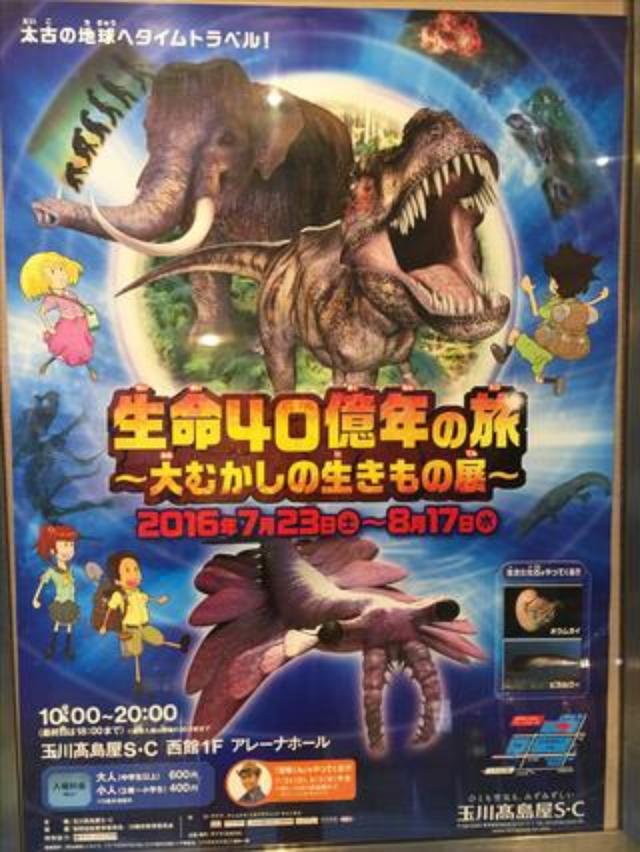 ポスター東京・二子玉川駅から数分の場所で、「生命40億年の旅~大むかしの生きもの展~」という、展示会が開催されています。どんな展示内容なのかといいますと、まぁタイトルの通りなのですが、会場をカンブリア紀などの「古生代」、恐竜がいた「中生代」、人類が登場した「新...